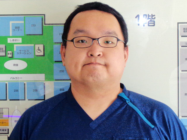 在宅復帰に向け、自立支援を行いADL(日常生活動作)の向上を図る為、介護職だけでなくリハビリ職は医療職とのチームケアに努めています。